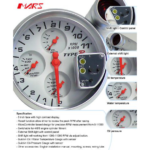 Jual Tachometer Type R 5 Inch Takometer Type R 4 In 1 Indonesia Shopee Indonesia